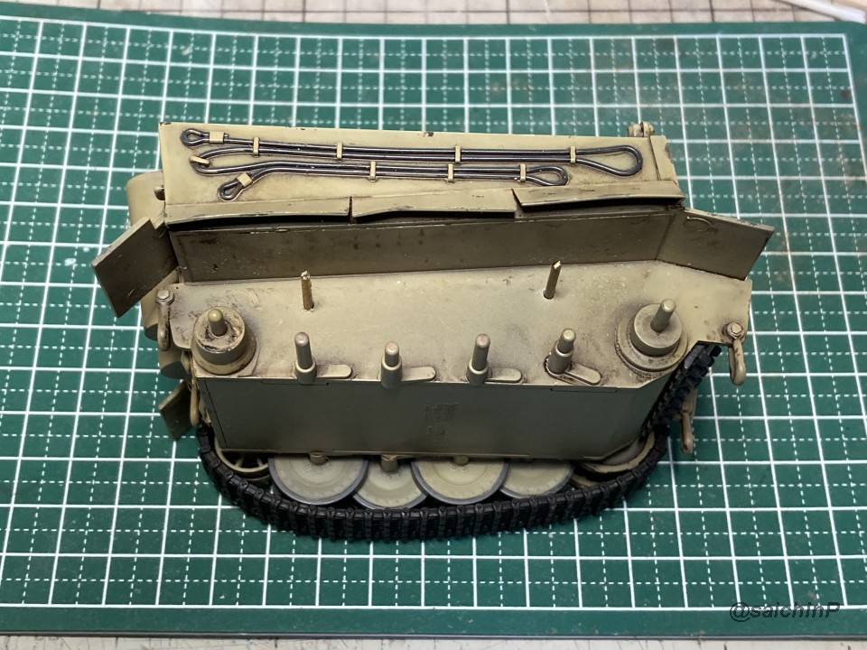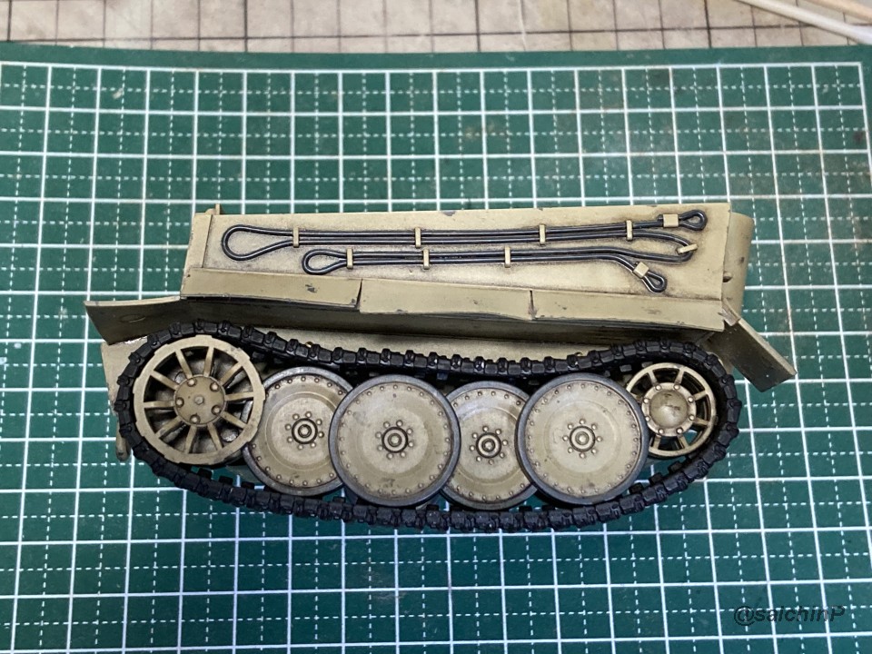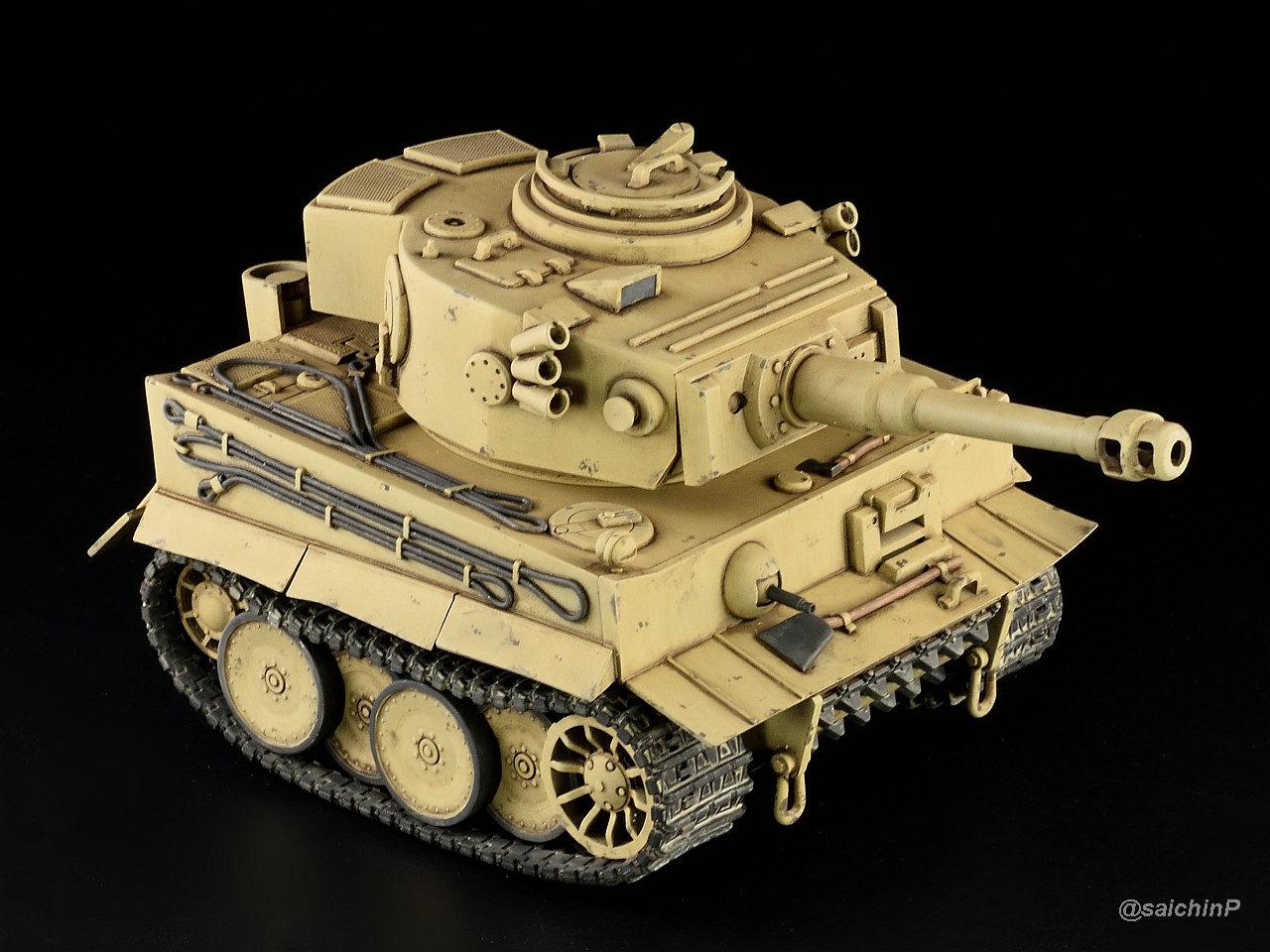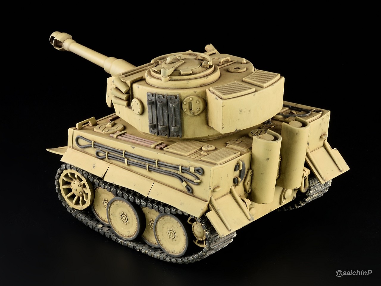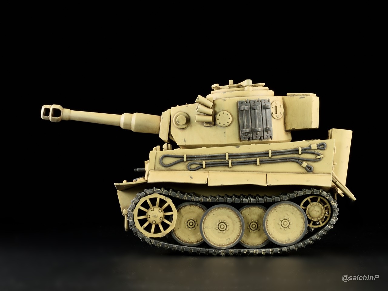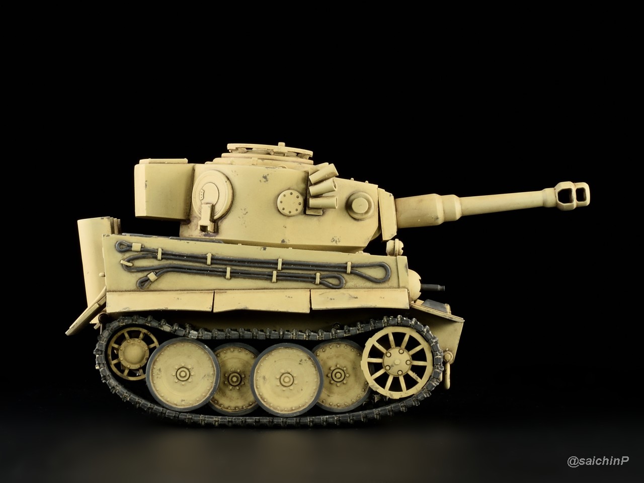 デフォルメなのでノンスケールです。 毎年1月はだいたいWFの準備で忙しいのでこれが今年のプラモ初めとなります。 寅年なのでティーガーです、今年を逃すとあと12年積まれることになりそうなので作りました。 WorldWarToonsというのがどういう世界観なのかよくわからないまま作っています。 フェンダーが最初からベコベコに曲がっている表現になっていたのでそれに合わせてチッピングなどのウェザリングを施しています。 国籍やナンバーのデカールは付属していましたが、あえて貼らずに無国籍なおもちゃ風にしてあります。 デフォルメ具合が良くてかわいいでしょ。 砲塔のハッチは開閉式なのでねんぷちなんかを乗せることも可能です。 作業期間は5日間。 作業中の様子。 キットはスナップフィットですが各部は接着して仕上げました。 基本的に普段作ってる1/35の戦車と同じように作って塗っています。 ベルト式の履帯がたるむように車体に真鍮線を通して無理やり押し付けるようにしてます。 あとは機銃の銃口を開口したくらいのストレート組みです。 TINAMIにも投稿していますので、いいね支援等してくれると嬉しいです。 関連 EGガンダムをイラスト風塗装で仕上げました クラッフェンフォーゲル完成 タミヤのブルムベア後期型を作りました PR |