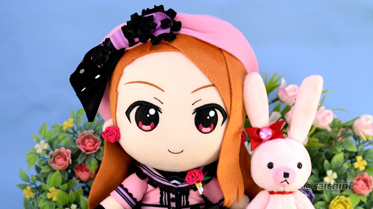 以前にやよいのが発売されたのが2020年の10月くらいで4年半ほど待ったことになりますね。 この伊織と亜美、真美が最後に出たやつでミリオンライブ52人全アイドル完走とのことです。 同じシリーズのやよいも持っていますが座りポーズで置きやすく、丸っこくてかわいいです。 伊織はロングヘアーでベレー帽をかぶっているのも特徴的です。 おでこの生え際はぬいぐるみ的にはそうなるのか~という髪パーツの重ね具合。 うさちゃんと一緒に。 やよいと一緒に。 おまけ、撮影はこんな感じで簡易的なセットを組んで行いました。 おまけ、今回の撮影に使ったのは中くらいサイズのうさちゃんです。 おまけ、これは紹介してなかったミリシタ4周年衣装のぬいぐるみです。 ぬいぐるみはフィギュアよりも持ち運びしやすいのでライブやイベントなんかのお供に持っていく人が多くて意外と熱いジャンルなんですよね。 最近は自作で服を縫って着せてるのとかもよく見かけます。 個人的にはぷちますのでかいぬいが好きです。 関連 ミリオンライブやよいちゃんぬいぐるみとか