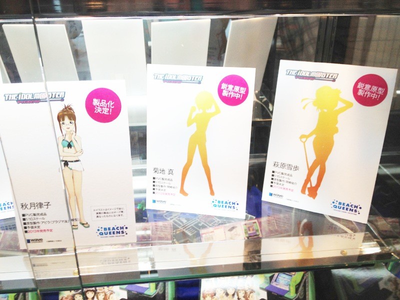 2日とも行って来ました、とりあえずライブ本編の感想ではなく会場で発表されたりした新作フィギュアのまとめです。 写真は混雑の中iPhoneで撮影したのでぶれてたりしますのでご了承を。 WAVEのBEACH QUEENS新作、やよいと伊織 やよいおり来た!これで勝つる! BEACH QUEENSはさらに雪歩と真が製作中、律子が発売決定となっていて、楽しみです。 シルエットの雪歩のスコップ装備がいい感じですw WAVEのドリームテック 双海亜美 竜宮小町ver. こちらは以前発表のあったのもの展示でした、これで竜宮小町3人が揃います。 メガハウス ブリリアントステージ 如月千早 アイマス2版 以前のメガホビで撮影禁止で原型展示されていたものが塗装されていました。 コトブキヤ Angelic Island 春香、美希、真 こちらは冬のWFで発表され原型状態だったものが塗装済で展示されていました。 グッドスマイルカンパニー ねんどろいどぷち アイドルマスター2 ステージ02 アイマス2ねんぷちの第2弾が塗装済で展示されていました、第1弾がもうすぐ発売で、ライブ会場の物販で先行販売していましたが、完売のためわたさいちんPは買えませんでした。 ということで、フィギュア関係の主だったネタをまとめました。 ライブ本編にいては、ニコ生で6/25夜にニコ生でねんどPとか呼んでだべる予定ですw