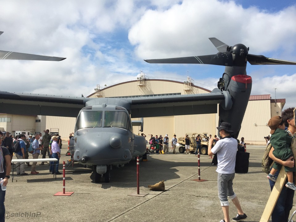 何かと話題のオスプレイ、これは米空軍のCV-22ですが、すごい人だかりでした。