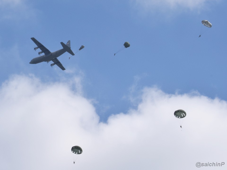 横田は飛行展示は少なめ、私は昼には帰ったので午後の飛行は見れていませんが午前中はC-130からの空挺降下がありました。