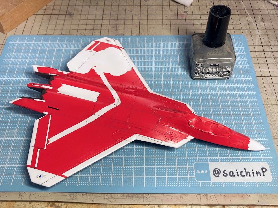胴体後部の白い塗り分けをミスしていたのでこのタイミングで修正、やばい。