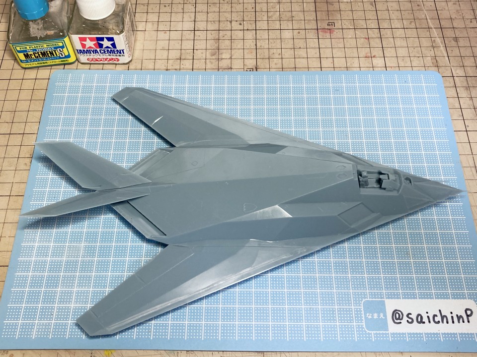 ハセガワの1/72スケール、F-117A ナイトホーク "アイドルマスター 萩原雪歩"の組み立て作業の解説編です。