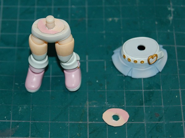 対策として腰部分に紙などを何枚か挟んでスカートの位置を上げて上半身と密着しやすくするのが本体無加工でお手軽です、腰の軸に瞬間接着剤を塗って太らせるのも併せるとより効果的。