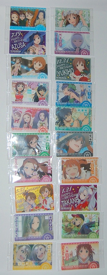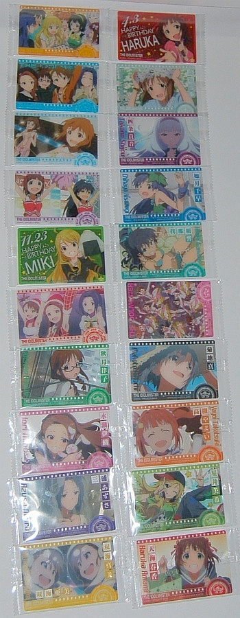 配置については表にするのが面倒だったので並び順のまま写真にとってあります 1箱目 春香、美希、オールキャストがキラキラver.でした 2箱目 亜美真美、あずささん、貴音、雪歩がキラキラver.でした 参考 アイドルマスターウエハース2