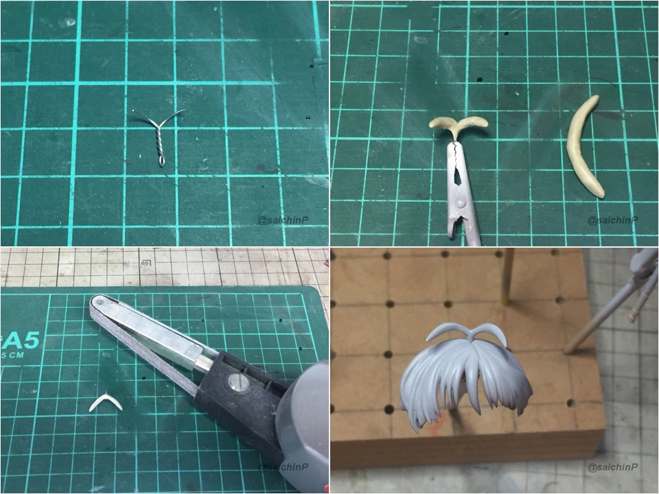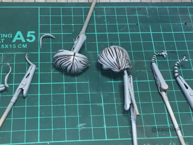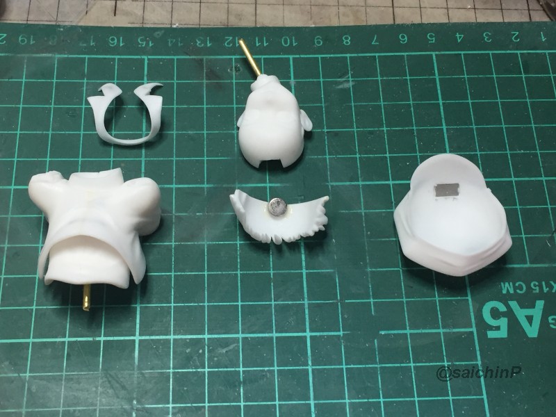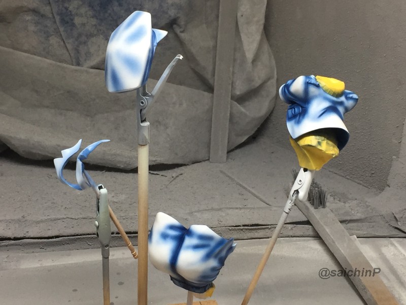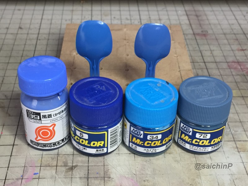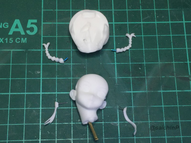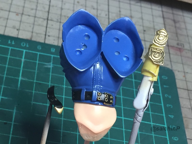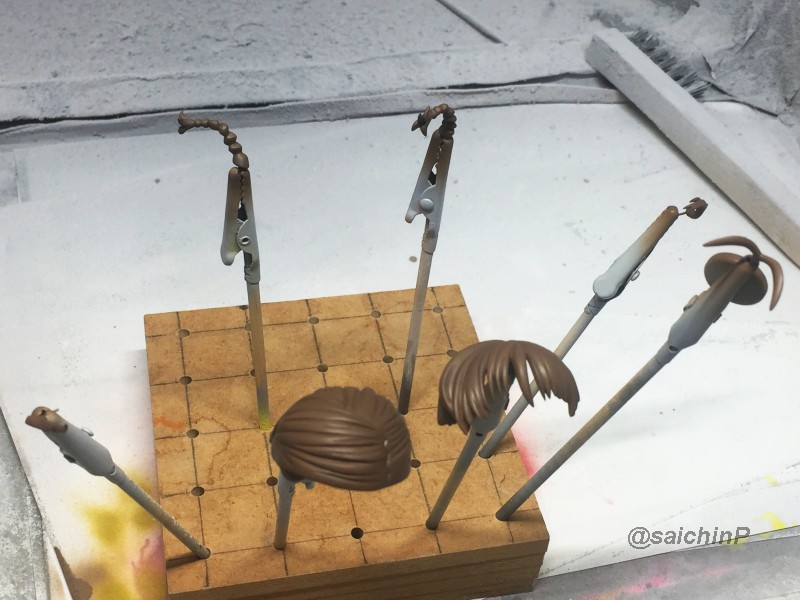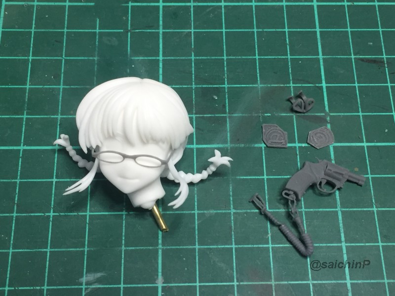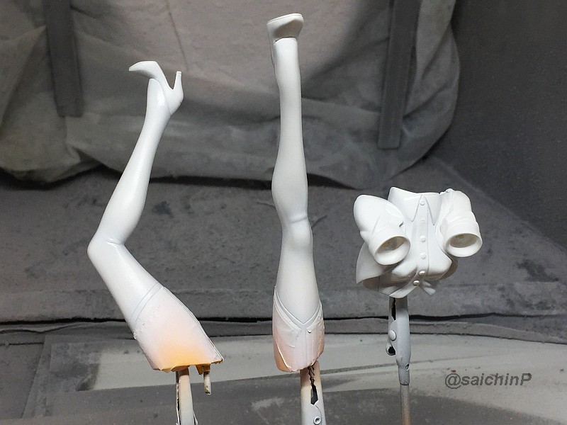 「EXTRA STAGE 秋月律子」の制作編です。 完成編はこちらの記事になります。 律子誕生日なのでガレージキットを組みました 作業開始は5/3 パーツチェックと洗浄、3Dプリントパーツが多いのが特徴。 洗浄は最近はこの洗剤と超音波洗浄機であっさりめに済ましてます。 軸打ちはパーツの断面積や想定される負荷に応じて0.5mmの虫ピン、1mmアルミ線、2mm真鍮線を使い分けています。 帽子の裏側に鉄板、髪の内側にマグネットを仕込んで帽子を着脱可能にしました。 3Dプリントパーツ、拳銃はこれで1パーツ、作業中に何度か折っちゃいました。 帽子を脱いだ時の差し替え用の触角?アホ毛?を針金を芯にエポパテで制作。 針金なので仕込んだマグネットで安定します。 髪の毛の塗装、パーツのモールドが深めでシャープなので、影色をスミ入れっぽく筆塗りしてからエアブラシで基本色を吹き重ねました。 肌色の前に白目を吹いて影色の明灰白色を吹いてマスキング。 肌色はいつものラスキウスのホワイトピーチ下地のクリアーペールレッドの吹き重ね。 ガーターストッキングとワイシャツは白サフ下地に影色のライトグレーを吹いてから白を吹き重ね。 服の色の調色、左2色を基本に右2本少々で調整して右のスプーンの色を採用。 服の影色はクレオス328ブルーで調色した青を吹き重ね。 ベルトの金具などの金色はマッキーのペイントマーカーを試しに使ってみました。 チョイ塗りには便利です、あとは求める色合いかどうか。 面相、瞳デカールはないのでクリアーでコーティングしてからエナメルで筆塗り。 まあだいたい線はヨレるので、溶剤を含ませた筆、爪楊枝、紙やすりなどで撫でたり、擦ったり、削ったりして修正を繰り返して正解に近づけていきます。 ベースは百均のコースターをニス塗りして使用。 つや消しクリアーを吹いたりして完成! 制作期間は1ヶ月半くらいでした。 関連 律子誕生日なのでガレージキットを組みました 水瀬伊織 ~STAGE~ 制作編 音無小鳥 シャイニーフェスタ水着Ver. 制作編 PR |