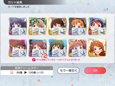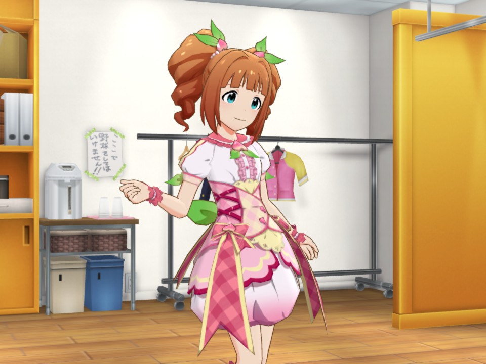 「スイートアイスドリームガシャ」 やよいはSSR未実装期間の長いアイドル2位だったのでそろそろ来るだろうと覚悟していました。 天井分までキープしていた無償ジュエルは3周年イベントを走ったために、6万ほどまで減っているのが不安ですがいきます。 まずは直前のセレチケ付属の10連チケット2枚を使いましょう。 これで出ればドヤ顔大勝利ですが甘くない、ミリクロのワンピース昴ちゃん。かわいい。 ここから無償ジュエル、30連で育ちゃん(被り) 40連であずささん(被り)、しかし出は悪くない。 しかしここから流れが変わる。 50~80連、SRのみ 90連でミリクロワンピース環ちゃん。かわいい。 100連超えると大勝利とは言えずに焦りが出てくる。 100~170連、SRのみ そして180連で、やよいゲット。 被りのSSR美也ちゃんに2倍がついて嬉しい! このセリフの「うわ~」っていうのがいいんですよ。 覚醒前カードのしいたけ目やよいはグリにあったこのカードを思い出しました。 うわやよいおいしそう。 ということで結果は SSRやよい SSRマスピ4個 ミリクロSR新規2枚でした。 無償ジュエルが2万以上残せてよかった。 衣装はミルキィ♡ピーチ、カボチャもとい桃っぽいシルエットのスカートが特徴。 伊織の衣装ローズシャワー・セレブレイトと色合いやスカートの形の相性がいいのでおすすめ。 ピーチ&ローズです。 アナザーは色合いが深みのある赤系になります。 こちらは伊織の5凸と合わせてみました。 ドレスアップルームからは以上です。 関連 ミリシタ3周年イベントをやよい100位で走った記録 ミリシタやよいチャレンジ「全力投球!スポーツパークガシャ」編 ミリシタ限定やよいチャレンジ PR |