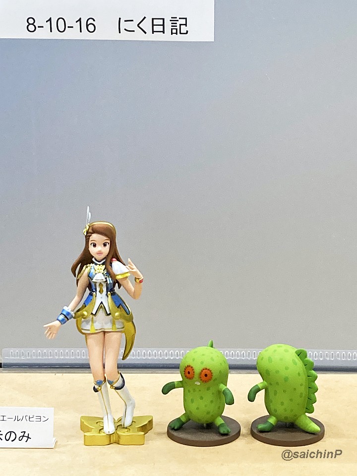 今回はディーラー入場口が正門側だったので看板が撮影できました、検温して入場です。 ディーラー名 にく日記 卓番 8-10-16 当日の卓の様子、向かって左が伊織(展示のみ)とチュパカブラのさいちんPサイド。 向かって右が水谷絵理ちゃんのねんどPサイド。 今回は感染症対策として参加人員を3名→2名に減らし、時短営業(15時撤収)とさせていただきました。(正直、直前まで参加辞退するか悩みました) 当日の会場の雰囲気は昼頃までは意外と人出が多く感じましたが、午後からはガラガラって感じでした。 時々、マスクから鼻を出して会場をうろついてる人がいて「うわぁ……」って思ってしまいますが、街中でもそういう人は一定数いるのでなんとも。 でもまあ、リアルイベントというのはやっぱり良くて、現地でしか受けられない刺激があり模型力が高まりますね。 お買い上げいただいた皆様に感謝です、チュパカブラの塗装方法についてはこの記事を参照していただければと思います。 ルミエールパピヨンやよいとチュパカブラの塗装について 次回のWF2022夏は7/24とのことですが、現状で参加は未定です、いろいろ決まったらまた告知します。 関連 WF2022冬 告知【8-10-16】 WF2022冬 参加します PR |