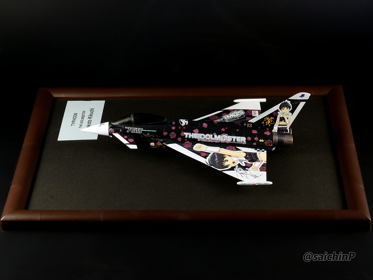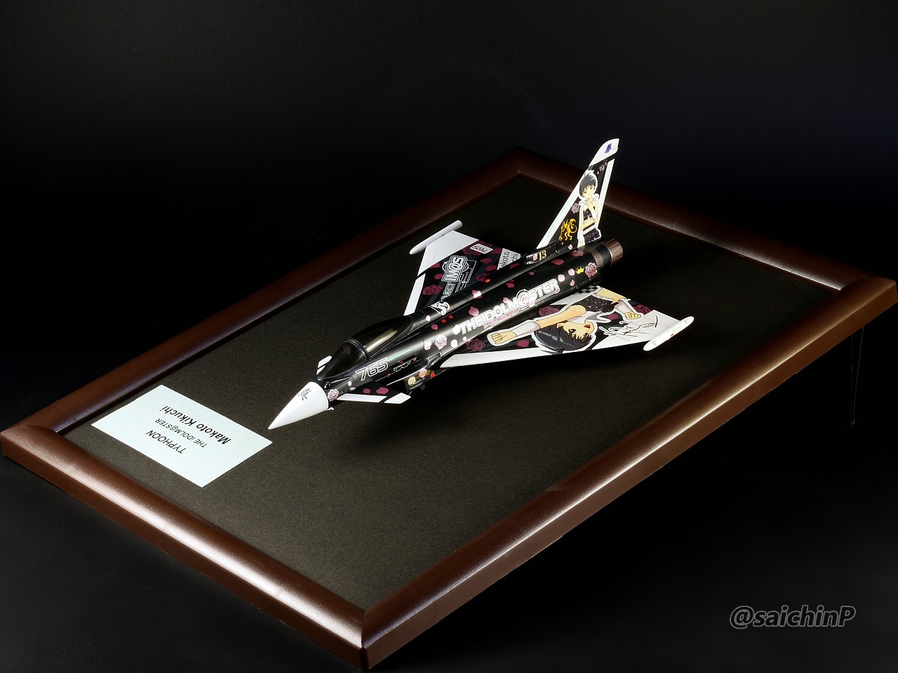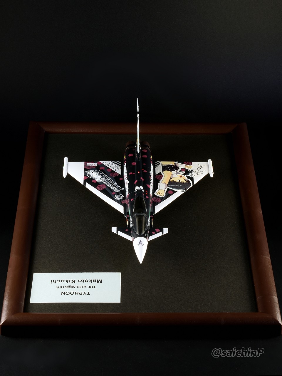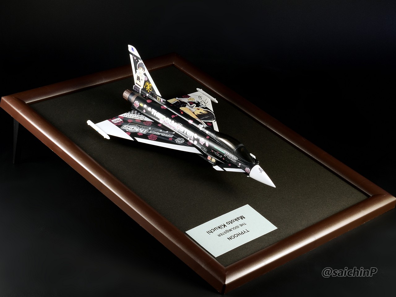 ハセガワの1/72スケール、タイフーン "アイドルマスター 菊地真"を作りました。 アイマス機を全部作ろうシリーズの5機目です。 作業中の様子は別記事で公開しています。 タイフーン 菊地真 制作編 ここからは各アングルでのギャラリーです。 黒い機体に黒背景なのでちょっと見にくいかもしれませんがこれまでの作品との統一感を重視しています。 作業期間は約4週間でした。 元キットがドイツレベル製のやつなのでパチピタ楽々組み立てとはいきませんでした。 我が家のアイマス機コーナーも充実してきました。 コンプリートまであと8機。 模型SNSにも投稿しているのでいいね支援よろしくお願いします。