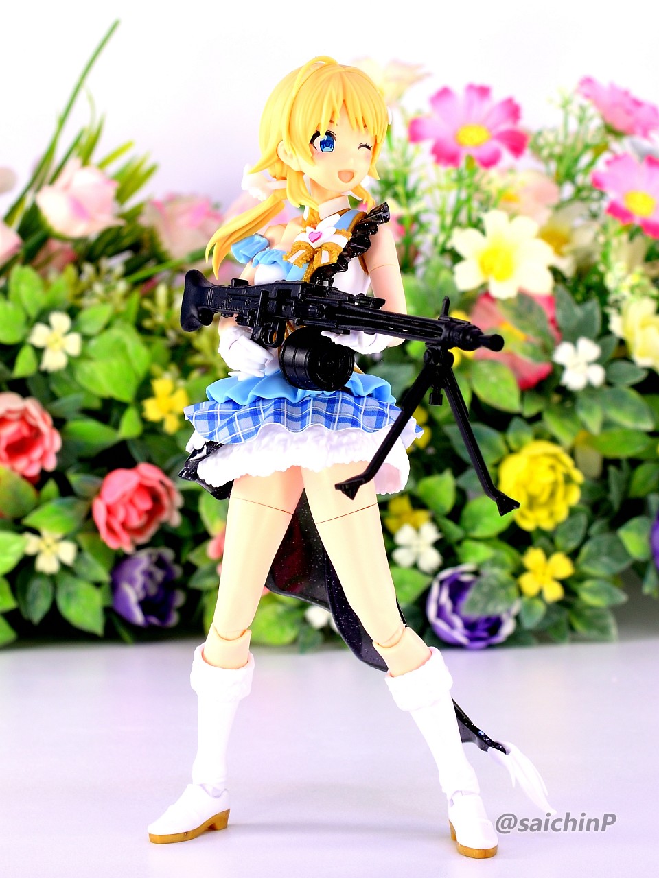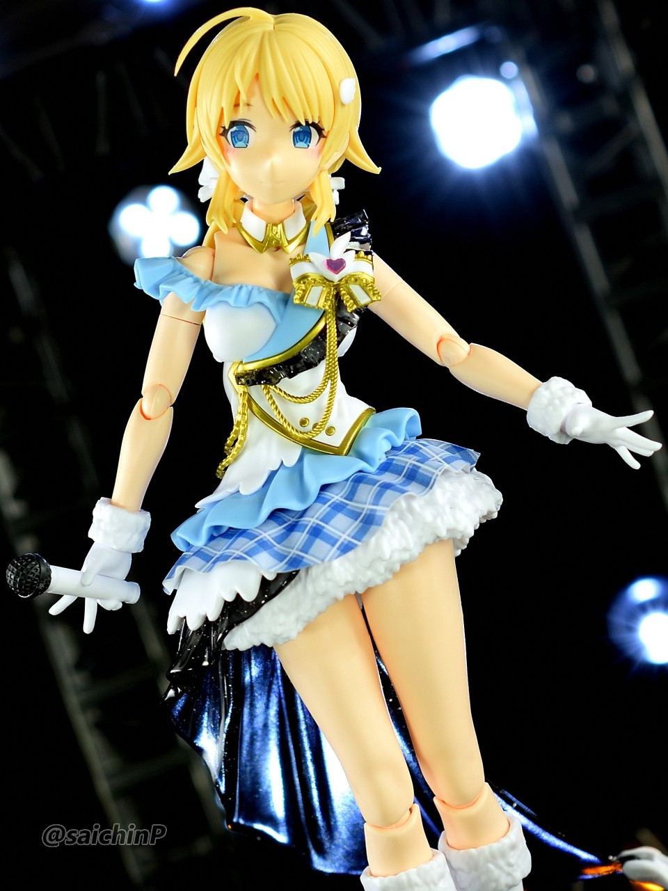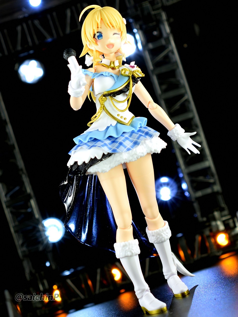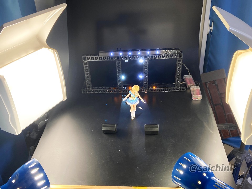 バンダイからアイマスのアイドルのプラモデルが出るということでそこそこ気合を入れて予約開始日にアソビストアでポチったやつです。 今回作ったのはオプション扱いで出ている八宮めぐる、風野灯織のフェイスパーツセットと衣装ビヨンドザブルースカイのボディセットを組み合わせます。 まず最初に、八宮めぐるでパチ組みしました。 無塗装で接着剤も使わずにこの完成度はすごいですね。 色分けプラモなのでパーツ分けがトリッキーというか組んでる途中はパズル感がありますね。 胸サイズ別のパーツやスカートのチェック柄を再現するシート、ラメ表現されたクリアパーツなど、パーツ単位で感心させられました。 武器用の持ちても付属しているのでリトルアーモリーのMG3を持たせてみました。 ここで一旦バラして胸パーツを灯織用の小さいものに切り替えます。 何しろ胴体は1人分しか買えていないので。 バラしたついでに金色部分だけエルドランゴールドを吹いて塗装しました。 ここを塗るだけでも質感がかなり良くなると思います。 そして組んだのがこれ、口元のほくろまで塗装済みなのはすごいですね。 金色部分の質感は最初のめぐるのと比較すると塗装で見栄えが良くなっていると思います。 スカートの黒いヒラヒラ部分の透け感がいいですね。 黒髪はゲート処理を丁寧にやらないと白化が目立つので気をつけましょう。 再びバラしてめぐるに戻したのが最終形態。 ブーツと腰パーツは接着して合わせ目を消しました。 ステージ風セットでの撮影。 ※この4枚の写真は画像処理で太もものラインを消しています。 撮影セットはこんな感じで百均で売っている山田化学のトラスとスピーカー。 各種LEDライトを組み合わせていますが、うまくトリミングすればライブっぽい雰囲気が出ると思います。 最低ラインのパチ組みでこれだけの完成度、あとは自分の腕や時間次第で部分塗装や全塗装すれば更に良くなる素晴らしいキットだと思いました。 765ミリオンでもこういうの出してほしいですね。