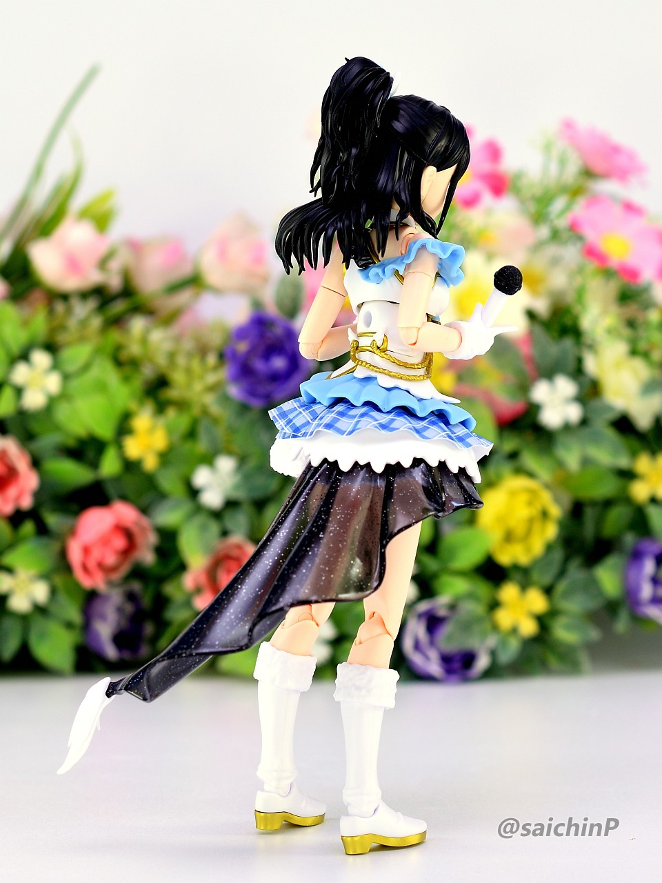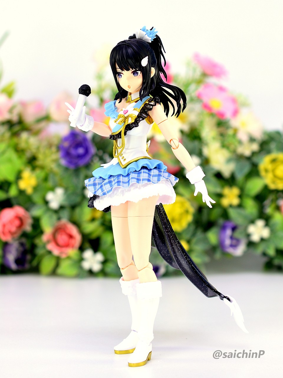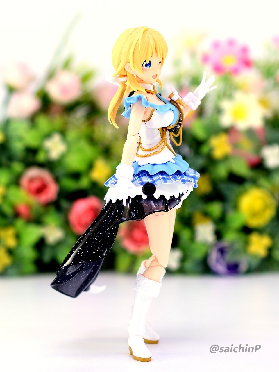 バンダイからアイマスのアイドルのプラモデルが出るということでそこそこ気合を入れて予約開始日にアソビストアでポチったやつです。 今回作ったのはオプション扱いで出ている八宮めぐる、風野灯織のフェイスパーツセットと衣装ビヨンドザブルースカイのボディセットを組み合わせます。 まず最初に、八宮めぐるでパチ組みしました。 無塗装で接着剤も使わずにこの完成度はすごいですね。 色分けプラモなのでパーツ分けがトリッキーというか組んでる途中はパズル感がありますね。 胸サイズ別のパーツやスカートのチェック柄を再現するシート、ラメ表現されたクリアパーツなど、パーツ単位で感心させられました。 武器用の持ちても付属しているのでリトルアーモリーのMG3を持たせてみました。 ここで一旦バラして胸パーツを灯織用の小さいものに切り替えます。 何しろ胴体は1人分しか買えていないので。 バラしたついでに金色部分だけエルドランゴールドを吹いて塗装しました。 ここを塗るだけでも質感がかなり良くなると思います。 そして組んだのがこれ、口元のほくろまで塗装済みなのはすごいですね。 金色部分の質感は最初のめぐるのと比較すると塗装で見栄えが良くなっていると思います。 スカートの黒いヒラヒラ部分の透け感がいいですね。 黒髪はゲート処理を丁寧にやらないと白化が目立つので気をつけましょう。 再びバラしてめぐるに戻したのが最終形態。 ブーツと腰パーツは接着して合わせ目を消しました。 ステージ風セットでの撮影。 ※この4枚の写真は画像処理で太もものラインを消しています。 撮影セットはこんな感じで百均で売っている山田化学のトラスとスピーカー。 各種LEDライトを組み合わせていますが、うまくトリミングすればライブっぽい雰囲気が出ると思います。 最低ラインのパチ組みでこれだけの完成度、あとは自分の腕や時間次第で部分塗装や全塗装すれば更に良くなる素晴らしいキットだと思いました。 765ミリオンでもこういうの出してほしいですね。