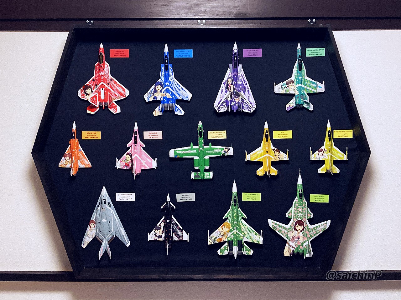 先日、春香のF-22を完成させたことで、ハセガワから1/72で製品化されていたエースコンバット6のアイマスコラボDLCのアイマス機を13機全て完成させることができました。